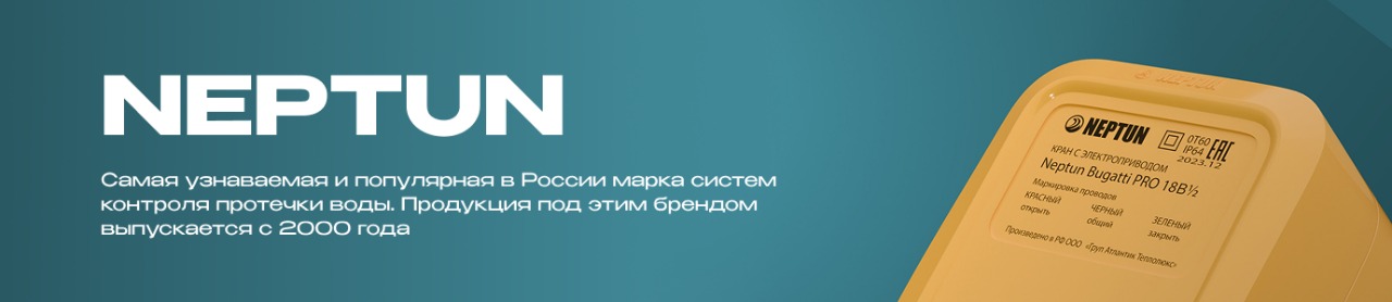 «Neptun» – самая узнаваемая и популярная в России марка систем контроля протечки воды. Более 4,5 миллионов систем «Neptun» надежно защищают жилые дома, административные, офисные и производственные здания от последствий аварий систем водоснабжения и отопления. Система контроля протечек воды «Neptun» стала победителем номинации «Лучшие пять товаров» конкурса «Лауреат года», который ежегодно проводится под эгидой Губернатора Московской области.