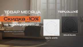 В период с 15 марта по 15 апреля действует акция "Товар месяца": стоимость снижена на 10% на терморегуляторы Solus (black and white).
